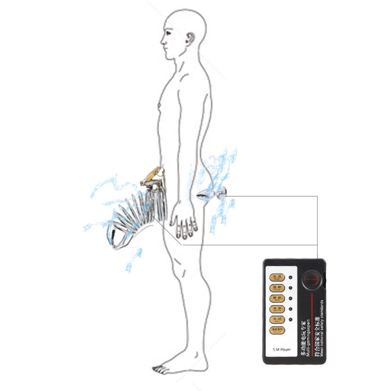 CX143 Electric Shock Anal Plug Chastity Lock Set